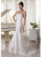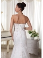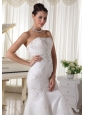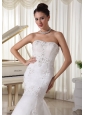 If you are looking for a wedding gown that is simple, yet elegant, this one would be a great choice. This mermaid wedding dress features a sweetheart neckline with dazzling beadwork and appliques. The skirt features more of the same beautiful appliques found in the bodice. The back features a corset-style closure that ensures a perfect fit. All eyes are on you!