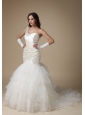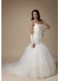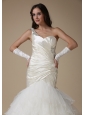 Home >  Wedding Dresses >  Popular Wedding Dresses > Fashionbale Mermaid One Shoulder Wedding Dress Taffeta and Organza Appliques and Ruch Court Train