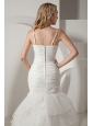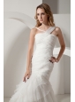 When it's time for your wedding, you want the most amazing dress you can find–this pure one can help makes your big day special! This white wedding dress has irregular straps and very refined pleated boice. The floor length skirt is made of layers of gathered tulle, which has an amazing shape and creates a beautiful silhouette. A stunning train extends from the back of the dress and a zipper up closure complete the design.