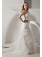 Fashionbale Mermaid V-neck Wedding Dress Court Train Organza Ruffles
