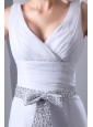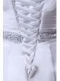 This bride wedding dress will bring you enough confidence and show your infinite charm. The fitted bodice has two straps and a V-neckline. A contrasting waist sash and bow adorn the mid-section. The mermaid-style skirt flares slightly at the hips. A lace up completes the look and secures the dress in place.