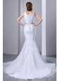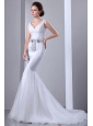 Fashionbale Mermaid Wedding Dress V-neck Bow Court Train Satin and Organza