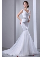 Home >  Wedding Dresses >  Elegant Wedding Dresses > Fashionbale Mermaid Wedding Dress V-neck Bow Court Train Satin and Organza