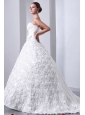 Home >  Wedding Dresses >  Elegant Wedding Dresses > Fashionbale Wedding Dress A-line Sweetheart Hand Made Flower and Beading Brush Train Fabric With Rolling Flowers