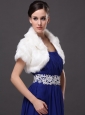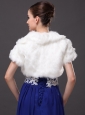 Faux Fur V-Neck Fashionable Wedding Short Sleeves Prom Jacket White