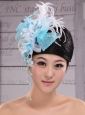 Home >  Accessories >  Headpieces > Feather and Rhinestones Decorate Aqua Blue Headpieces
