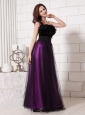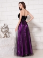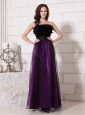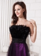Feather Beaded Decorate Waist Strapless Tulle Purple And Black Formal Evening Prom Gowns
