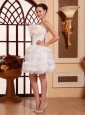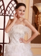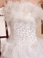 Home >  Wedding Dresses >  Latest Wedding Dresses > Feather Strapless A-line Mini-length Prom Gowns With Tulle Ruffles Customize