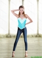 Feminine Aqua Blue Sweetheart Detachable Prom Dresses with Beading