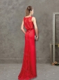 Feminine Column Red Evening Dress with Lace and Bowknot