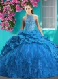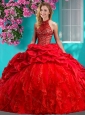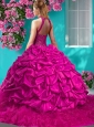 Feminine Halter Top Brush Train 15 Quinceanera Dress with Beading and Ruffles