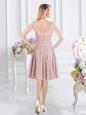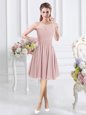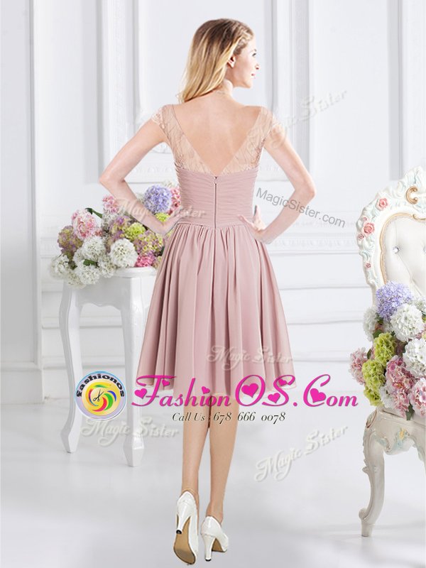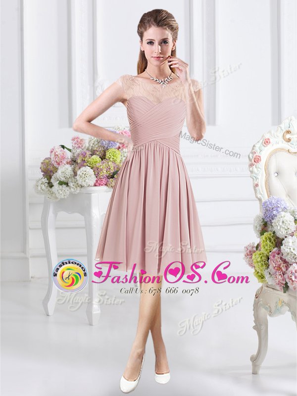 Fine A-line Quinceanera Dama Dress Pink Scoop Chiffon Cap Sleeves Knee Length Zipper