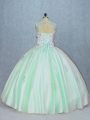 Fine Apple Green Ball Gowns Beading and Appliques 15 Quinceanera Dress Lace Up Tulle Sleeveless Floor Length