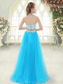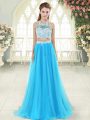 Fine Aqua Blue Sleeveless Floor Length Lace Zipper Homecoming Dress