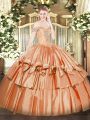 Fine Orange Red Ball Gowns Off The Shoulder Sleeveless Organza Floor Length Lace Up Beading and Ruffled Layers Sweet 16 Quinceanera Dress
