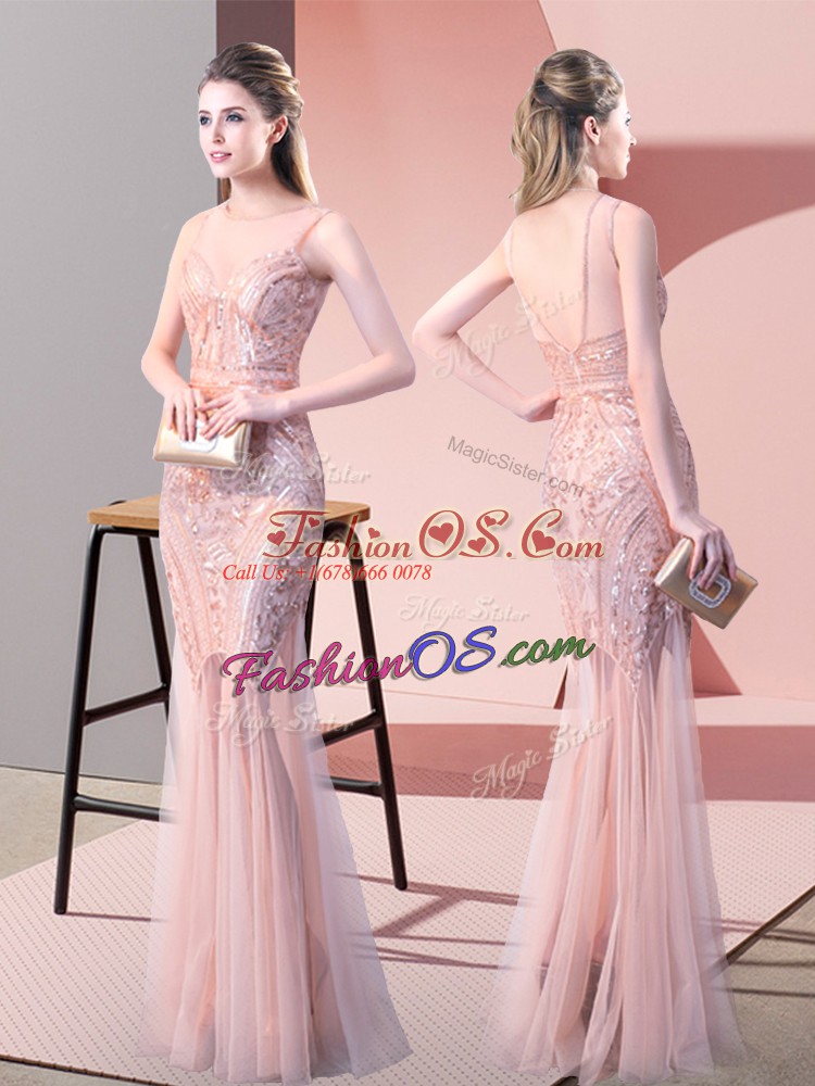 Fine Pink Backless Homecoming Dress Sequins Sleeveless Floor Length