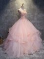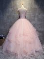 Fine Pink Quinceanera Dresses Military Ball and Sweet 16 and Quinceanera with Appliques and Ruffles Scoop Sleeveless Lace Up