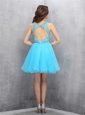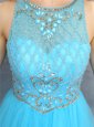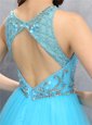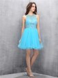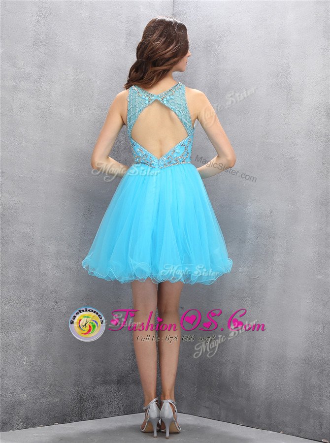 Fine Scoop Beading Prom Evening Gown Baby Blue Zipper Sleeveless Knee Length