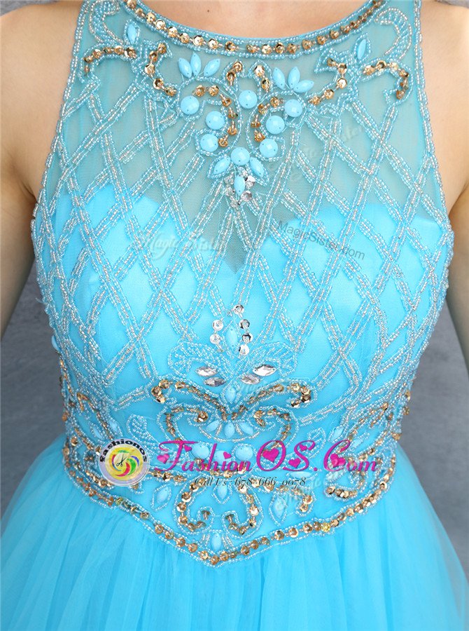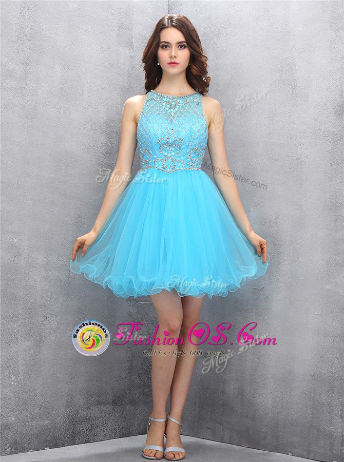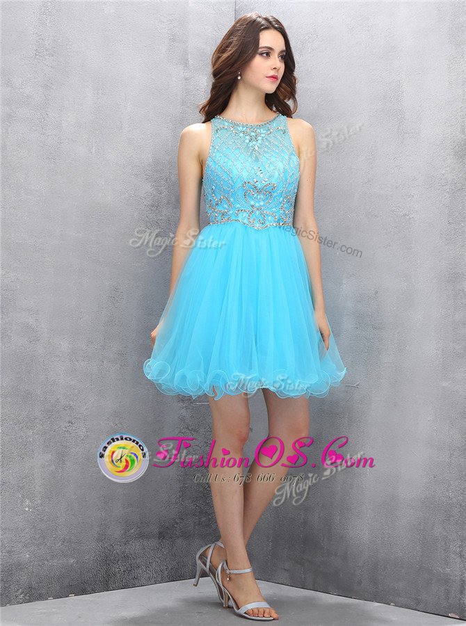 Home >  Prom Dresses >  Fashionable Prom Dresses > Fine Scoop Beading Prom Evening Gown Baby Blue Zipper Sleeveless Knee Length