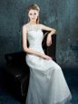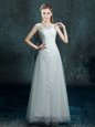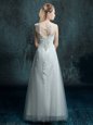 Fine Scoop Tulle and Lace Sleeveless Floor Length Wedding Dresses and Appliques