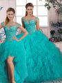 Fine Sleeveless Brush Train Beading and Ruffles Lace Up Quinceanera Dress