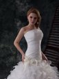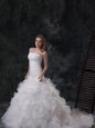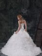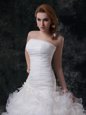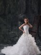 Fine Sleeveless Brush Train Ruffles and Ruching Lace Up Wedding Dresses