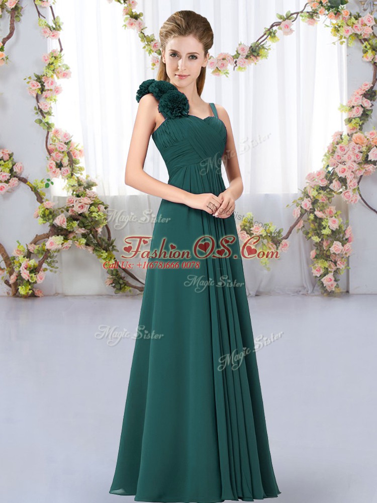 Fine Sleeveless Lace Up Floor Length Hand Made Flower Quinceanera Court Dresses
