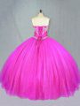 Fine Sleeveless Tulle Floor Length Lace Up 15 Quinceanera Dress in Fuchsia with Beading