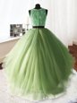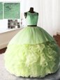 Fine Three Piece Scoop Sleeveless Brush Train Zipper Quinceanera Gown Yellow Green Organza and Tulle and Lace