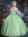Fine Tulle Sweetheart Sleeveless Lace Up Beading Sweet 16 Quinceanera Dress in Apple Green