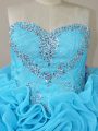 Fitting Baby Blue Ball Gowns Fabric With Rolling Flowers Sweetheart Sleeveless Beading Side Zipper Quinceanera Gowns Brush Train
