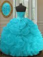 Fitting Ball Gowns Beading and Pick Ups Sweet 16 Dresses Lace Up Organza Sleeveless Floor Length