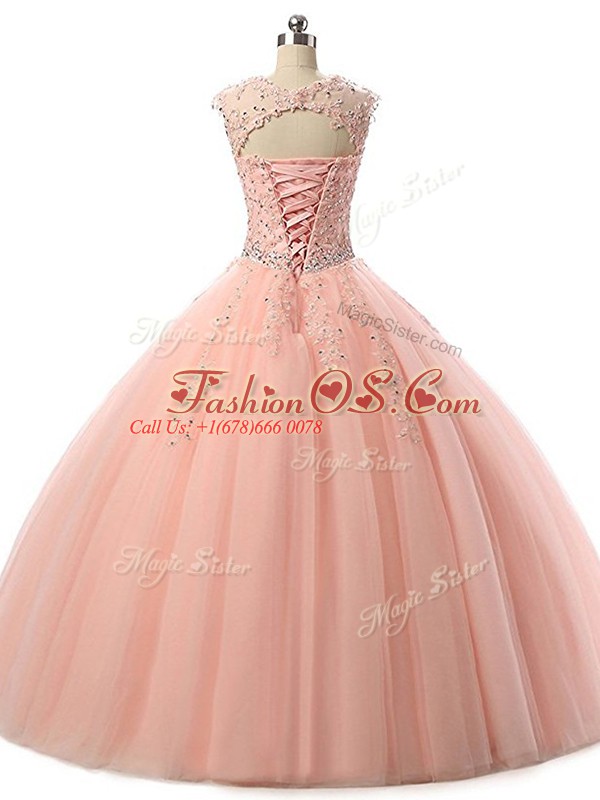 Home >  Quinceanera Dresses >  Fast Delivery Quinceanera Dresses > Fitting Blue Ball Gowns Tulle Scoop Sleeveless Beading and Lace Floor Length Lace Up Vestidos de Quinceanera