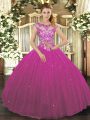 Fitting Cap Sleeves Lace Up Floor Length Beading and Appliques Sweet 16 Dress