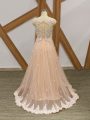 Fitting Champagne Sleeveless Floor Length Beading and Lace and Appliques Zipper Evening Gowns