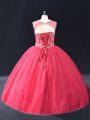 Home >  Quinceanera Dresses >  Discount Quinceanera Dresses > Fitting Coral Red Sweet 16 Dress Sweet 16 and Quinceanera with Beading Scoop Long Sleeves Lace Up