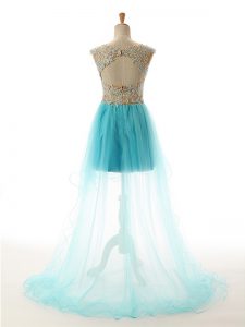 Fitting Fuchsia Evening Dress Prom and Party with Appliques Scoop Sleeveless Backless