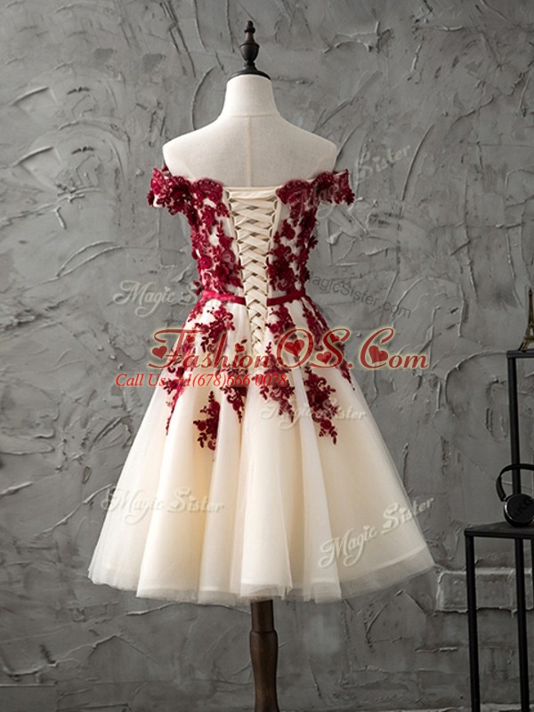 Fitting Knee Length A-line Sleeveless Champagne Court Dresses for Sweet 16 Lace Up