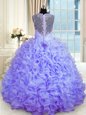 Fitting Lavender Sleeveless Beading and Ruffles Floor Length 15th Birthday Dress