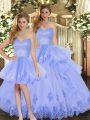 Home >  Quinceanera Dresses >  Detachable Quinceanera Skirts > Fitting Lavender Tulle Lace Up Sweetheart Sleeveless Floor Length Sweet 16 Quinceanera Dress Appliques and Ruffles