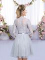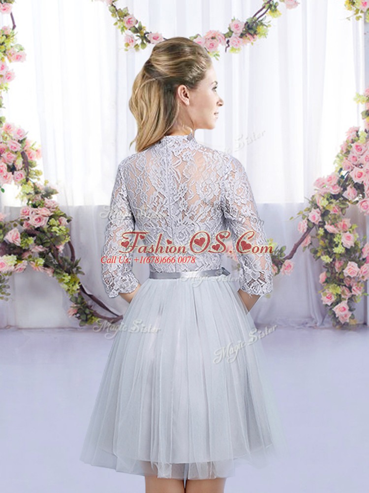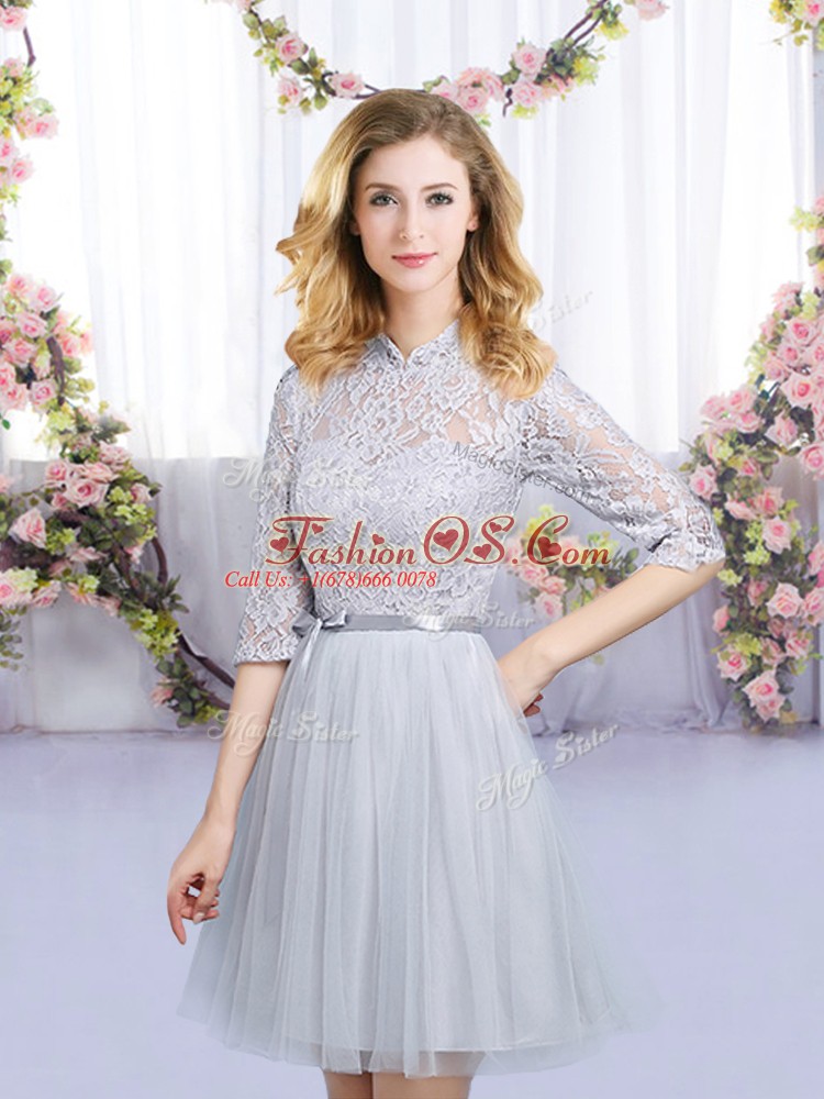 Fitting Mini Length Grey Court Dresses for Sweet 16 High-neck Half Sleeves Zipper
