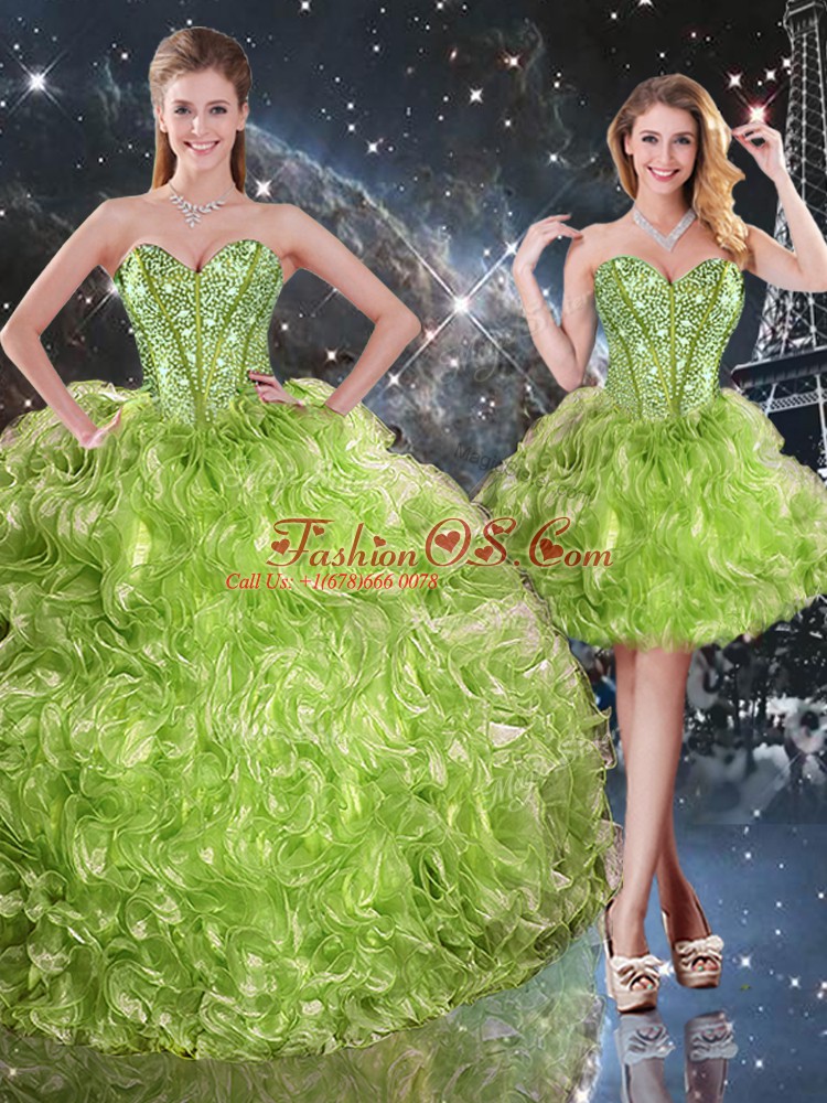 Home >  Quinceanera Dresses >  Detachable Quinceanera Skirts > Fitting Olive Green Sleeveless Organza Lace Up Quince Ball Gowns for Military Ball and Sweet 16 and Quinceanera
