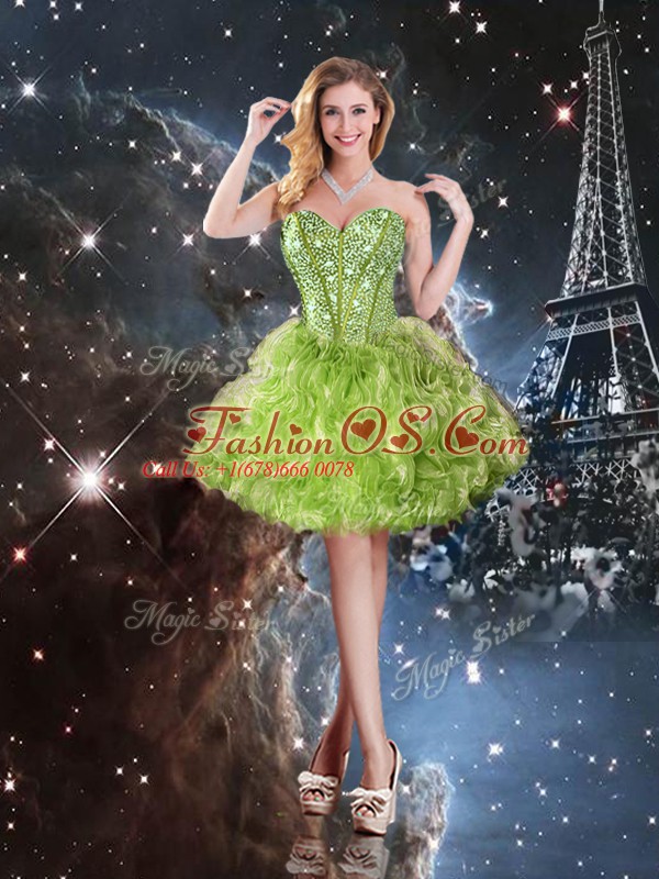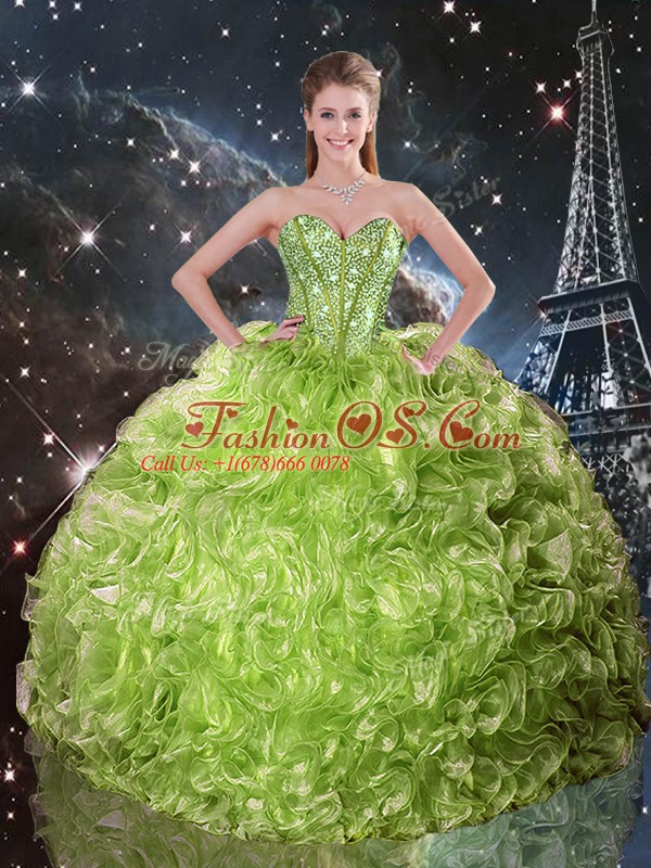 Fitting Olive Green Sleeveless Organza Lace Up Quince Ball Gowns for Military Ball and Sweet 16 and Quinceanera