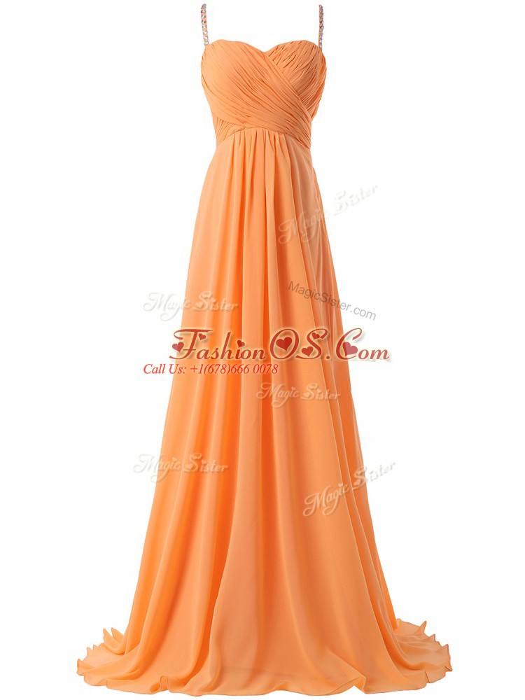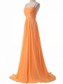 Fitting Orange Chiffon Criss Cross Prom Party Dress Sleeveless Sweep Train Ruching