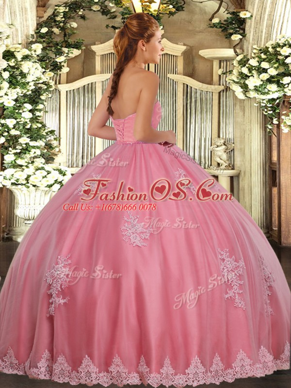 Fitting Sleeveless Beading and Appliques Lace Up Ball Gown Prom Dress