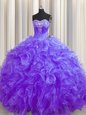 Fitting Sleeveless Organza Brush Train Lace Up Quinceanera Dress in Purple for with Beading and Ruffles