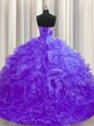 Home >  Quinceanera Dresses >  Clearance Quinceanera Dresses > Fitting Sleeveless Organza Brush Train Lace Up Quinceanera Dress in Purple for with Beading and Ruffles