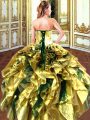 Home >  Quinceanera Dresses >  Luxurious Quinceanera Dresses > Fitting Sleeveless Organza Floor Length Lace Up Vestidos de Quinceanera in Gold with Embroidery and Ruffles