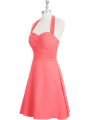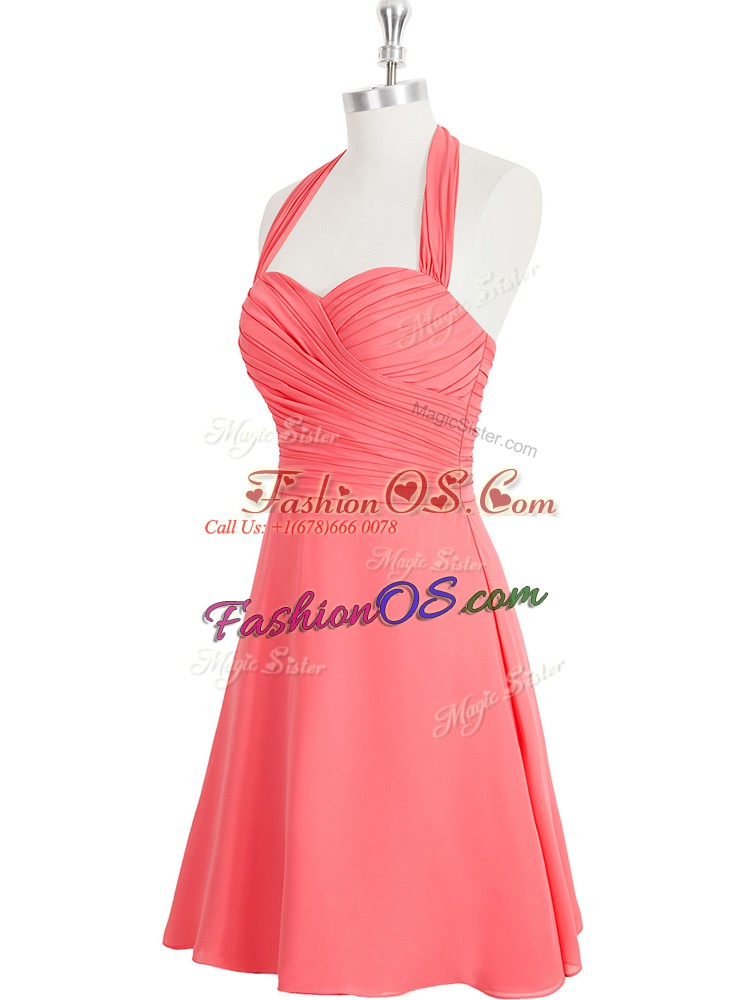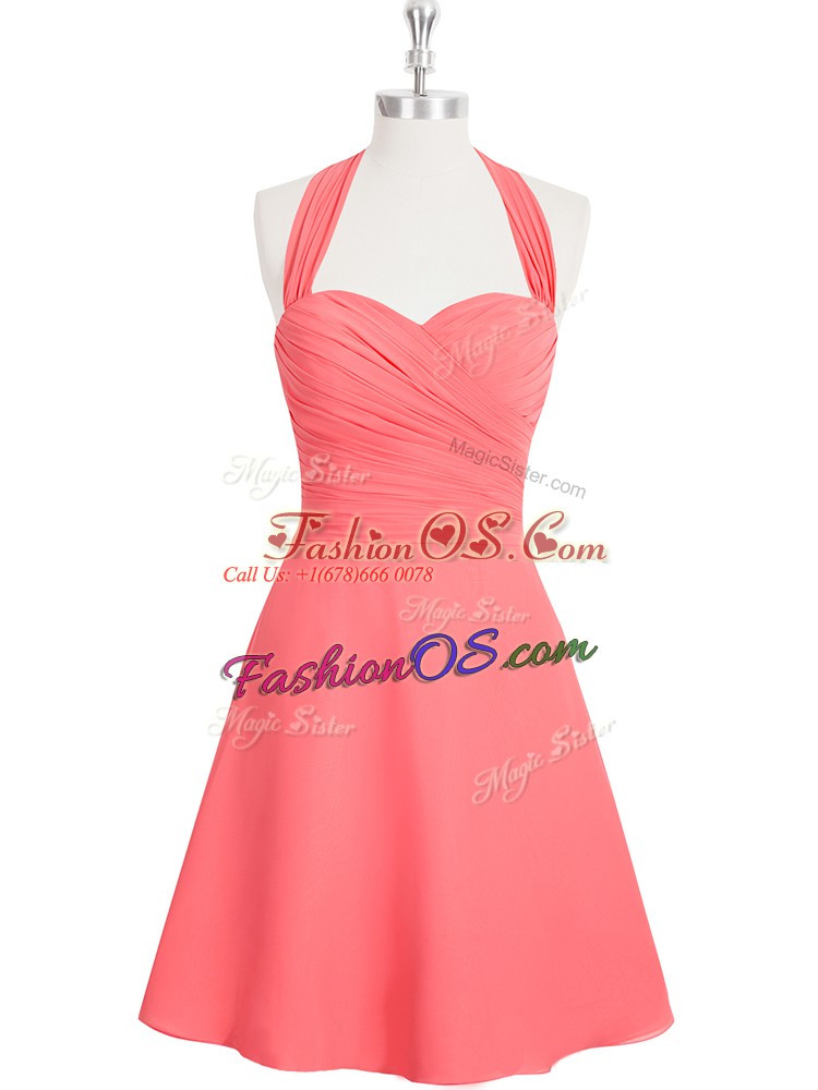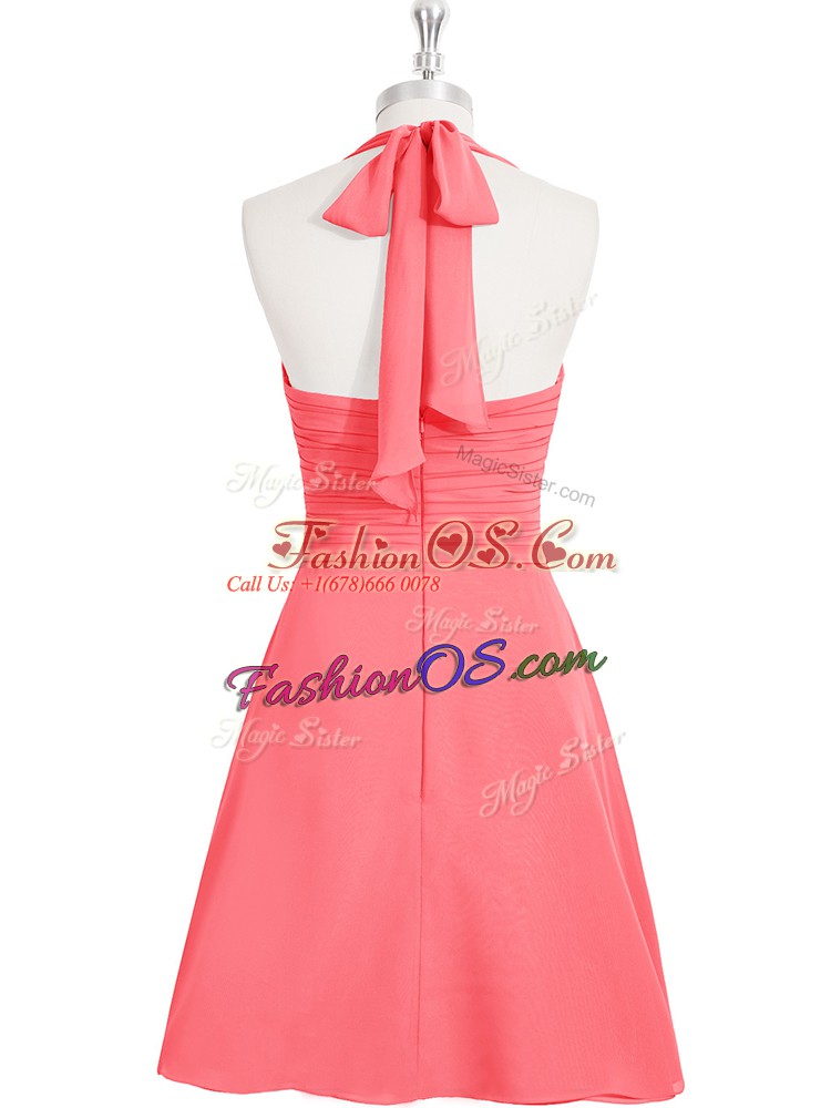 Fitting Watermelon Red A-line Ruching Homecoming Dress Zipper Chiffon Sleeveless Mini Length