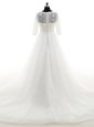 Home >  Wedding Dresses >  Affordable Wedding Dresses > Fitting White Clasp Handle Scoop Lace Bridal Gown Tulle Half Sleeves Brush Train